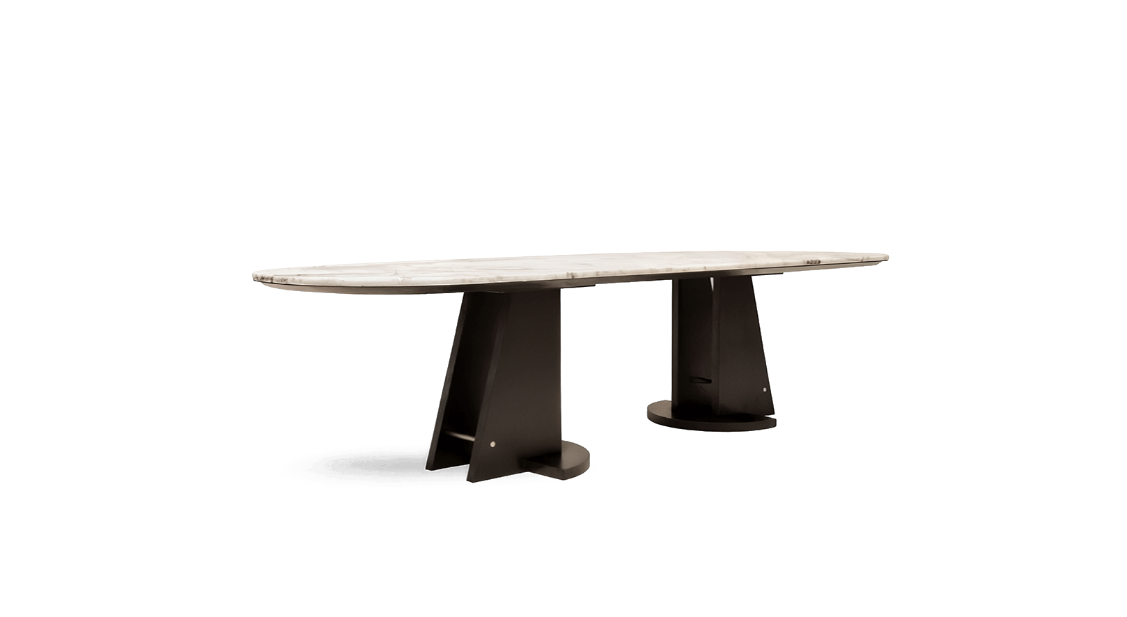 The special marquetry top, available in Onygè Brown and Onygè Black, creates a pattern that confers great dynamism and recalls the atmosphere of the ‘30s.