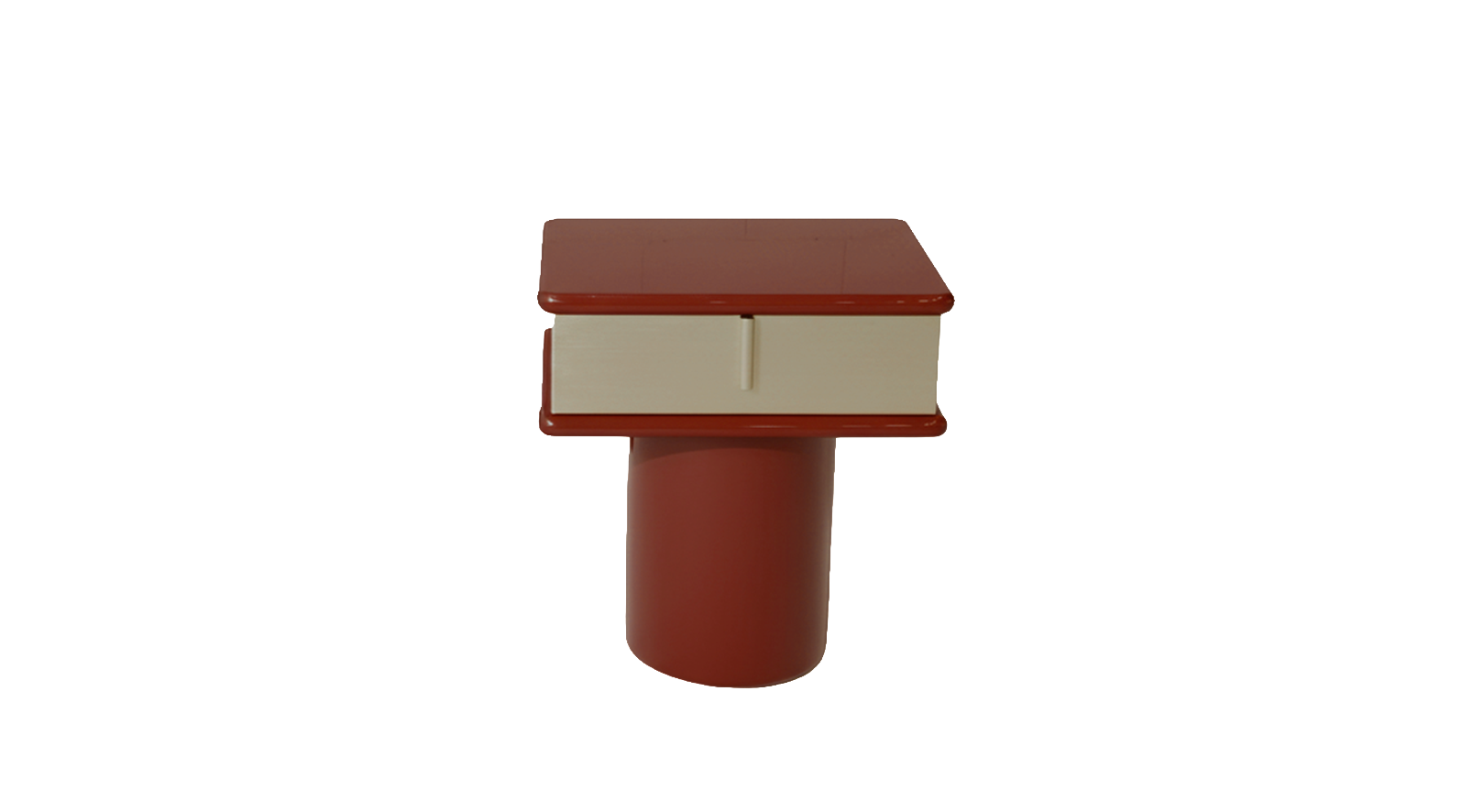 Le linee essenziali del piano si incontrano con una base scultorea, creando un gioco di pieni e vuoti che dona carattere all’ambiente.