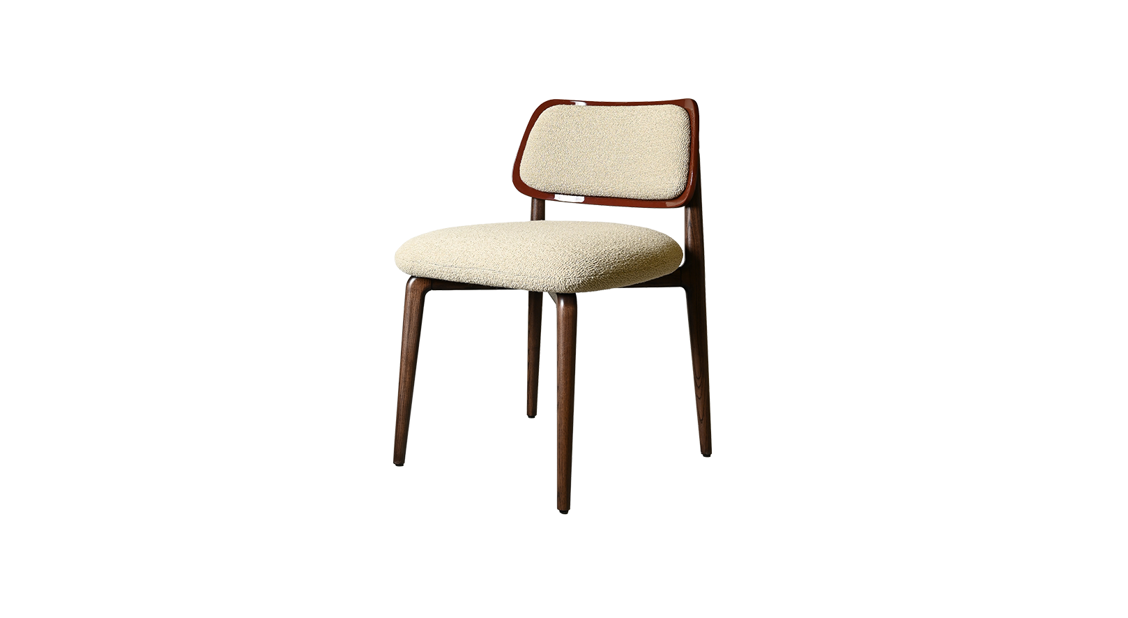 The structure’s simple lines and geometric contour create the perfect support for the rounded seating cushion. The backrest visually reminds an embracing parenthesis resulting in a pleasant roundness of harmonious and balanced proportions.